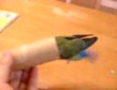 トイレットペーパーの芯に入るコザクラインコ