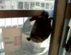 網戸を登るギリシャリクガメの亀太郎