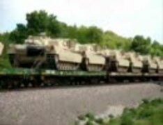 戦車などを輸送している貨物列車