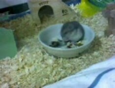 エサを食べるハムスター (寝てる?)