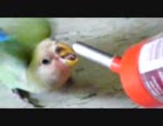 コザクラインコに水を飲ませる