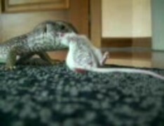 幼いオオトカゲがネズミを食べる