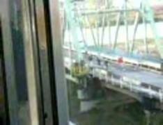 長野電鉄 新村山橋を通過する車内から旧村山橋を撮る
