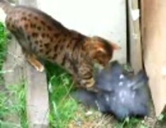 猫がハト捕まえおった
