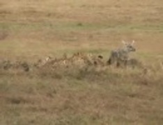 チーターが食べ終わるのを待つジャッカル