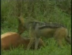 ジャッカル、インパラを食べる