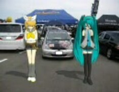 カーオーディオクラブの痛ヴィッツの前でミクとリンに踊ってもらった