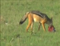ジャッカルがガゼルを食べている