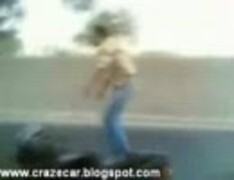 バイクを立ち乗りするインドの男性