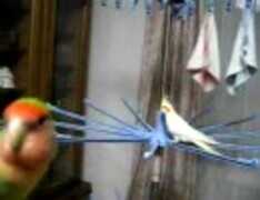 ご機嫌オカメインコ・ルルと通りすがりのコザクラインコ・リリー