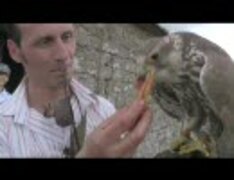 鷹匠がハヤブサを紹介