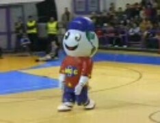 米バスケのハーフタイムショー 得体の知れない動きをするマスコット