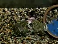 二匹のカエルがラットを奪い合う
