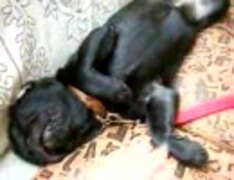 黒パグ犬 柚子 爆睡してる柚子にいたずらw
