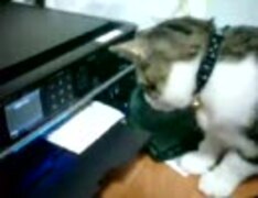 年賀状のお手伝いをする猫