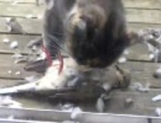 三毛猫さんが鳥たべる