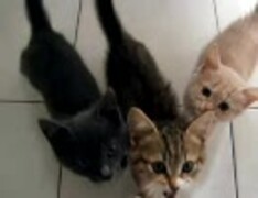 夕飯準備の飼い主さんに必死にすがる子猫たち