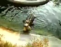 ワニがカメ食べてるよ
