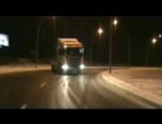 トラックが夜の路面を華麗にドリフトスリッピング