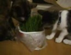 七味と春雨 猫草をひたすら食べる