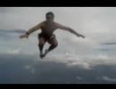 パラシュート無しのパンツ1丁でスカイダイビングする男