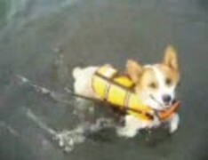 コーギー 海水浴