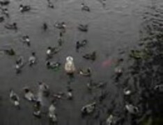 エサを取り合うカモ