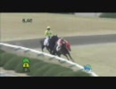 落馬寸前から持ち直して、鐙(あぶみ)が外れたまま2着でゴール[高画質版]