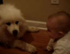 犬を見て 笑いが止まらない赤ちゃん