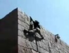 ものすごい速さで壁を降りる男性