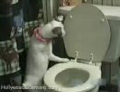 トイレの水を流して狂喜する犬