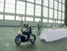 新型モンスターバイク・BMW-S1000RRでテーブルクロス引きトリック