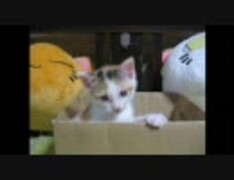ダンボールで遊ぶ子猫