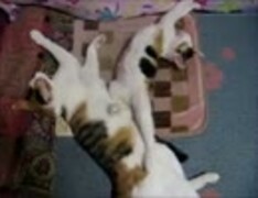 ネコネコ動画「芸術的な寝相の親子ぬこ」