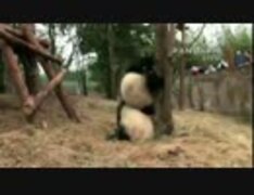 2015年2月22日中継のハイライト 木から降りて来た毛竹(マオジュー)は足を枝に挟んでしまう。この日の毛竹は何をやっても目立っていた!
