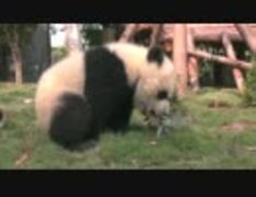 2015年4月11日中継のハイライト 毛竹(マオジュー)は草地に座って芝を齧る。