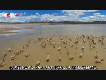 無人航空機が100匹以上の入浴中のチベットカモシカの群れを捕らえた