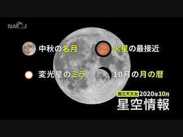 2020年10月の星空情報・天文現象(中秋の名月/火星の最接近/変光星のミラ/10月の月の暦)