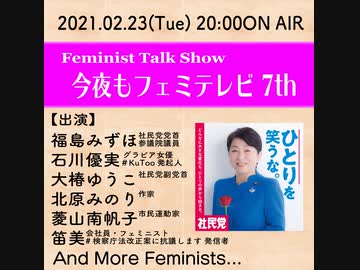 《録画配信》今夜もフェミテレビ7th〜緊急事態宣言の夜はオンラインで繋がろう〜【福島みずほ×石川優実×大椿ゆうこ×北原みのり×菱山南帆子×笛美】