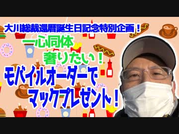【大川ID】大川総裁還暦誕生日記念特別企画!ニコニコ動画「大川興業大チャンネル」有料会員の皆様へモバイルオーダーでマックプレゼント!