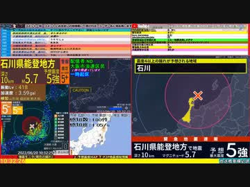 コメ無し版【緊急地震速報】石川県能登地方(最大震度5強 M5.0) 2022.06.20【BSC24】