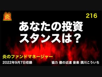 炎のファンドマネージャー 第216回「あなたの投資スタンスは?」 2022/9/8