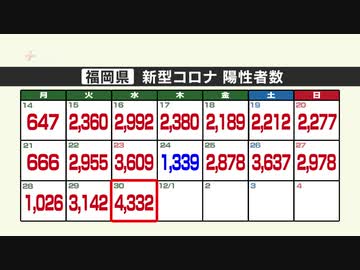 新型コロナ陽性(30日)福岡県4332人 4000人超は9月10日以来