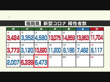 新型コロナ陽性(18日)福岡県6473人、佐賀県1065人