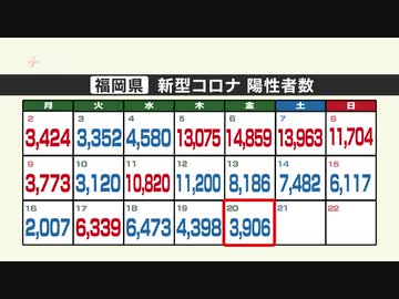 新型コロナ陽性(20日)福岡県3906人、佐賀県630人