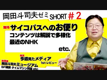 【無料】ショート岡田斗司夫ゼミ#2「最近のNHK」「コンテンツの多様化」「案外評判が良いSF教室」