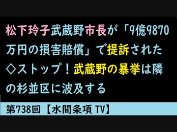 第738回『松下玲子武蔵野市長が「9億9870万円の損害賠償」で提訴された◇ストップ!武蔵野の暴挙は隣の杉並区に波及する』【水間条項TV】