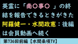 第736回前編『英霊に「南〇事〇 」の終結を報告できるときがきた阿羅健一・水間政憲:後編は会員動画へ続く」【水間条項TV】