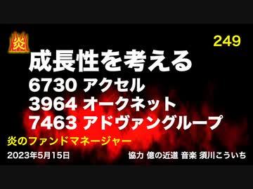 炎のファンドマネージャー 第249回「成長性を考える。6730アクセル、3964オークネット、7463アドヴァングループ」 2023/5/15収録