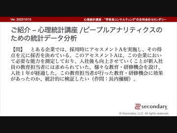 【社内教育・研修の効果を検証したい】ご紹介 – 心理統計講座 /ピープルアナリティクスのための統計データ分析